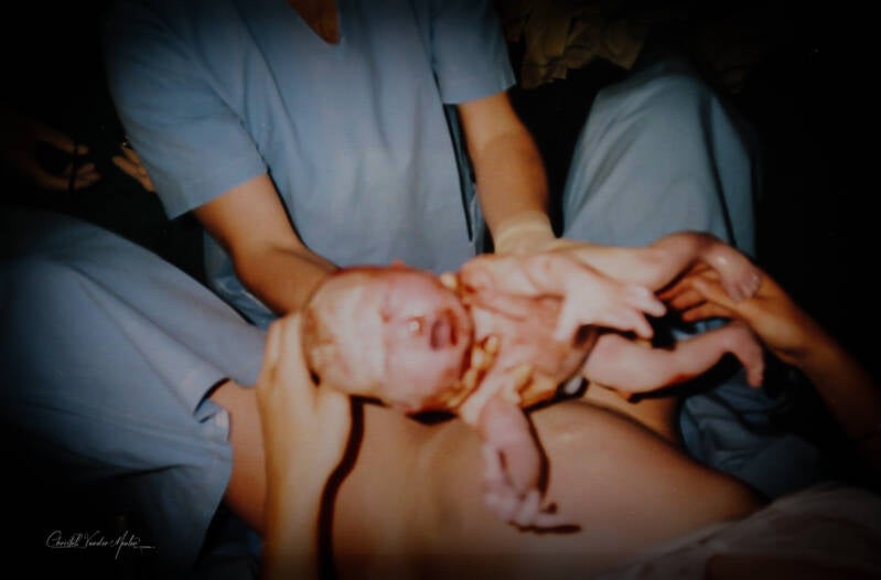 Toen ging het allemaal heel snel. Ik had plots volledige ontsluiting en persdrang.